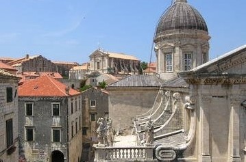 Opposite the palace through a narrow street is a square, Gunduliceva Poljana, which is the site of the busy morning market. In the same square is the Jesuit Monastery that is from the early 18th century. From here you can head for the little old town port and visit the city walls which encircle the city and which have been remarkably preserved.